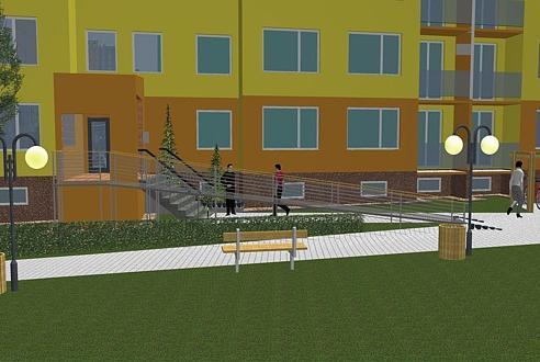 Pro snížení přístupové bariéry provádíme šikmé rampy z ocelových konstrukcí.