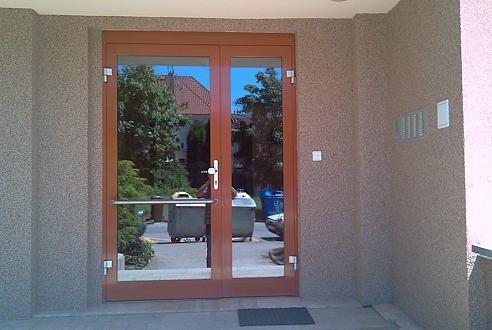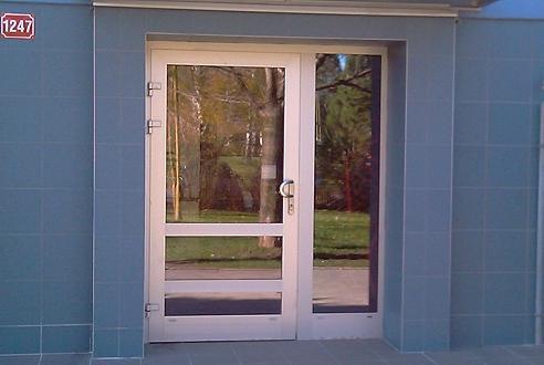 Nejpoužívanejší a nejosvědčenější systém vstupních dveří jsou dveře z hliníkových profilů s přerušeným tepelným mostem se skleněnou výplní izolačním dvojsklem nebo trojsklem.