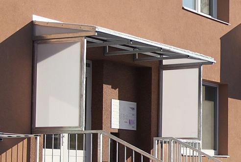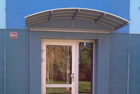 Samostatně provádíme nové vytvoření zastřešení vstupů například formou betonových prefabrikátů, ocelové konstrukce s průhlednou nebo plnou výplní, včetně případného odvodu srážkové vody pomocí žlabu nebo tvaru stříšky mimo vstup.