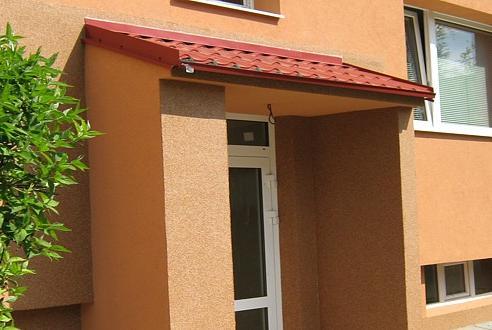 Samostatně provádíme nové vytvoření zastřešení vstupů například formou betonových prefabrikátů, ocelové konstrukce s průhlednou nebo plnou výplní, včetně případného odvodu srážkové vody pomocí žlabu nebo tvaru stříšky mimo vstup.